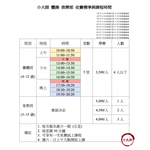 『*~小大師 體操 俱樂部~* 開學團體班 方案』...