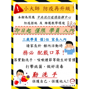 「小大師!防疫重要通知~」即日起 僅限 學員入內!