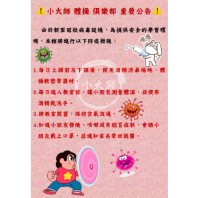 !!!『*小大師 體操 俱樂部 病毒防疫 重要公告*』!!!