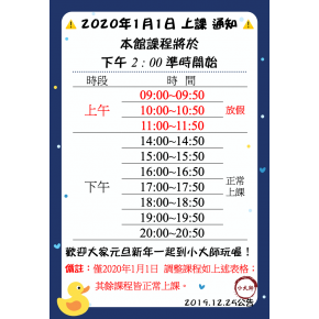 !『**小大師 體操 俱樂部 2019年1月1日 上課通知**』!