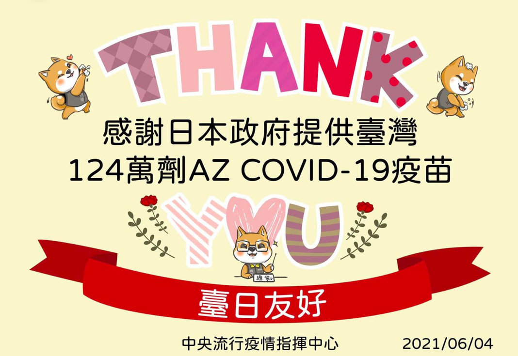 謝謝日本政府提供臺灣124萬劑AZ疫苗