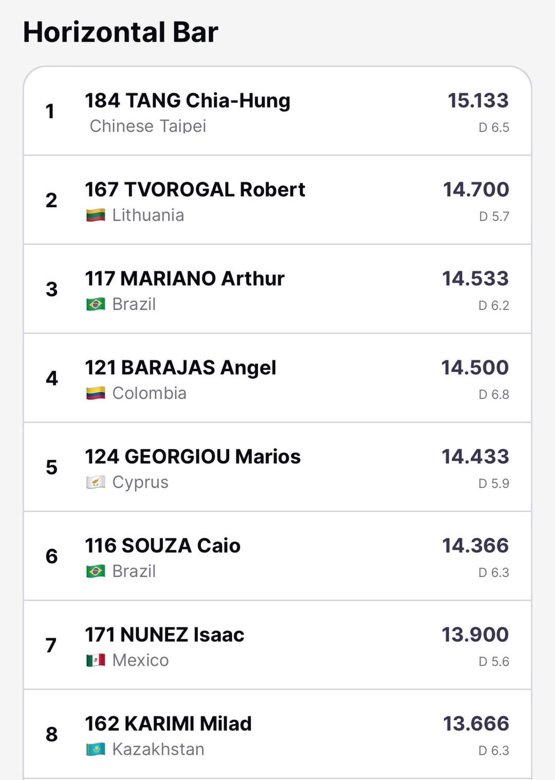 *奧運總積分90分!全包~ *單槓總錦標第一名 *單槓決賽第一名 卡達X世界盃 航海王表示:回國將再嘗試提高難度至16.8!!! 恭喜!航海王團隊!臺灣的貓王! 單槓 決賽影片 https://youtu.be/-4p0cXoKIzY?si=p0TCvc3uTv-DLu78 #教育部體育署 #國家運動訓練中心 #國家運動科學中心 #黃金計畫 #國家科學及技術委員會 #臺灣師大 #士航海王艦隊 #運動競技表現實驗室 #唐嘉鴻 #亞洲貓王 #小師大 #小大師 #SIGOA #FIG
