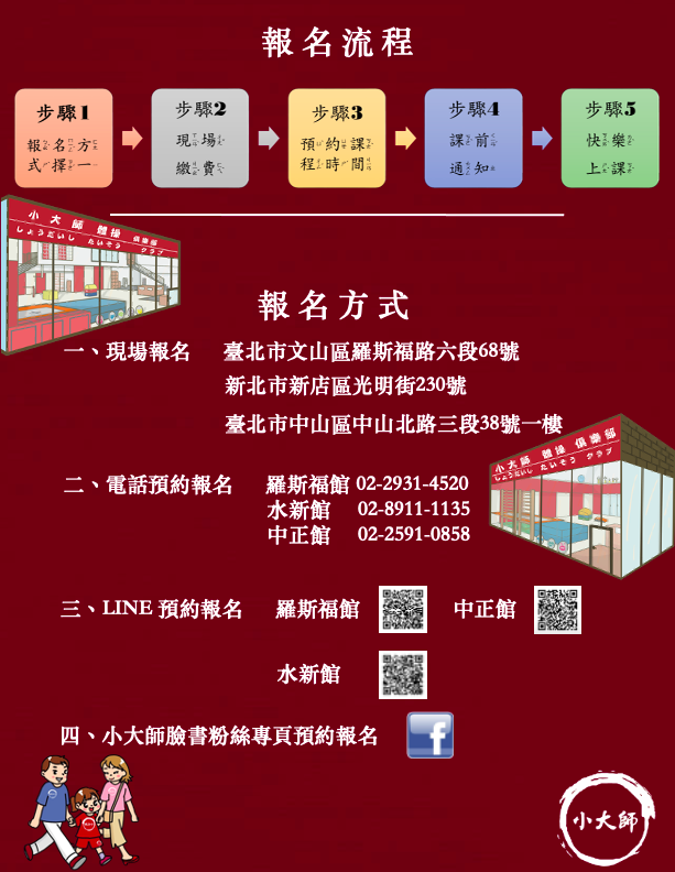 我要馬上預約體驗~~ 趕快點選小師大 臉書粉絲專頁預約體驗 https://www.facebook.com/小大師-304449123423582/ (搶先預約試上鈕位於 電腦 顯示粉絲專頁 封面照片 右下方) (若用手機預約則 報名鈕 在 小大師 大頭照下方)